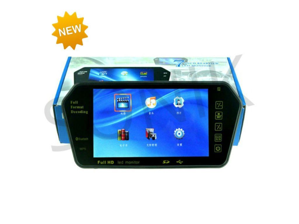 Full HD 7" auto TFT LCD monitor zpětné zrcátko s vestavěným Bluetooth MP5 FM foto displejem USB TF slot podporuje zadní kameru, ale dodává se bez zadní kamery