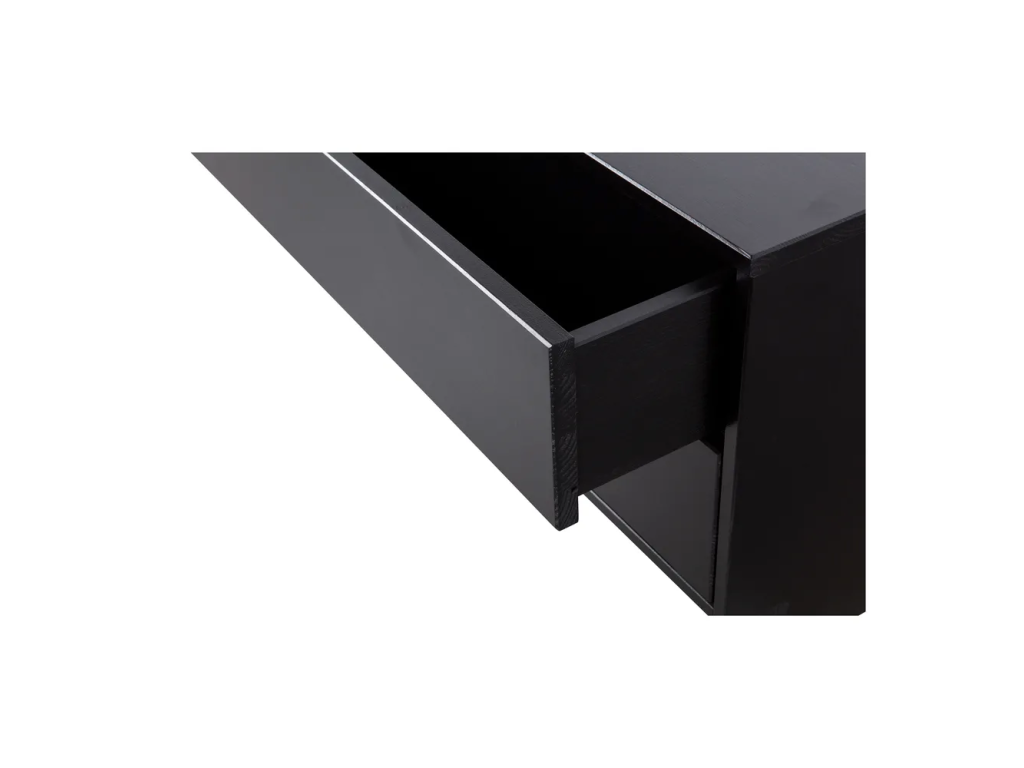 Modulárny TV stolík Finca od značky WOOOD v čiernej farbe vyrobený z masívnej borovice. Stolík má rozmery 75x40x40 cm a je opatrený praktickými šuplíkmi s bezúchytkovým otváraním push to open. Lakovaný povrch zaisťuje ľahkú údržbu a dlhú životnosť.