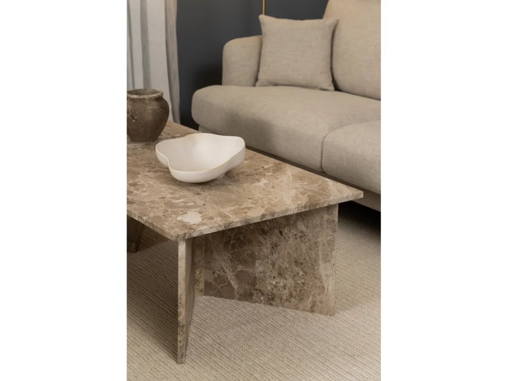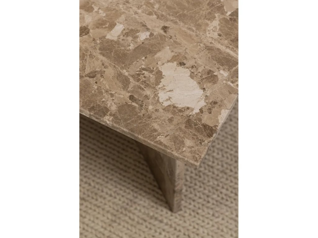 Tento konferenční stolek je vyrobený ze světle hnědého tureckého mramoru. Vzhledem k povaze přírodního materiálu se jednotlivé kusy přirozeně drobně liší v barevném odstínu, struktuře i povrchu. Domů k vám tak dorazí opravdu unikátní kousek.