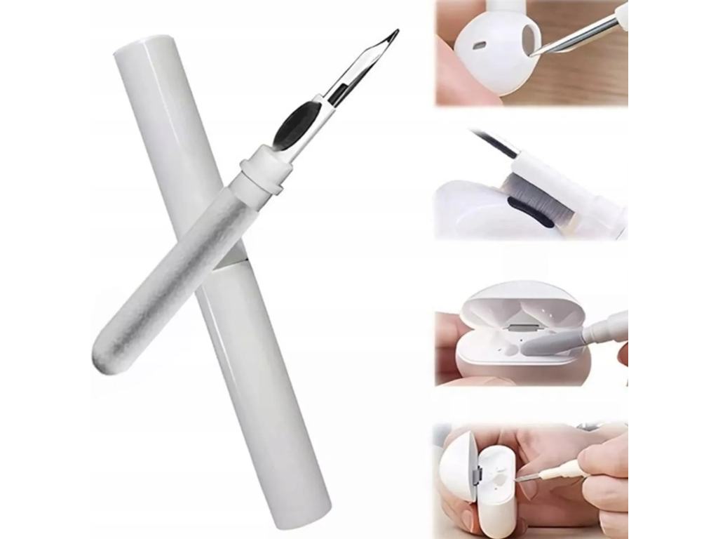 Pero na čistenie slúchadiel dokáže vyčistiť všetko od malých otvorov až po nabíjaciu priehradku. Hrotom pera je kovová špička, ktorá dokáže vyčistiť malé časti a otvory špuntov do uší.