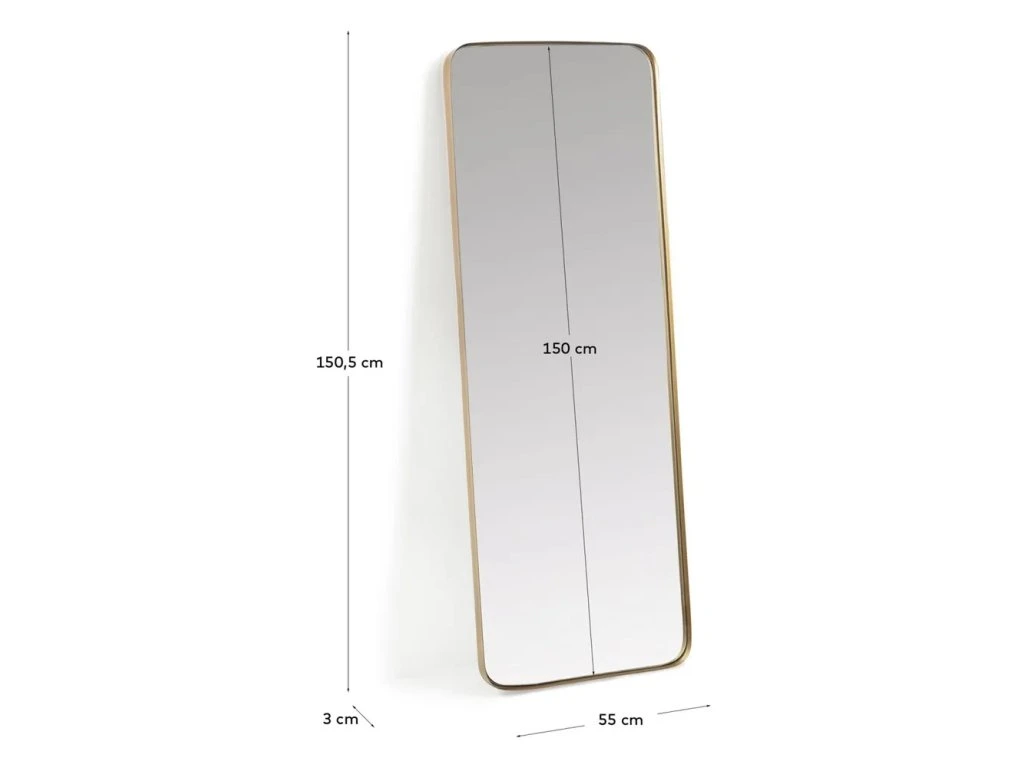 Barva Zlatá Šířka 55 cm Výška 150.5 cm Váha 14 kg Tvar Obdélníkový Tloušťka 3 cm Doplňkový materiál Sklo Rám Kov Materiál rámu Ocel Péče Otírejte vlhkým hadříkem