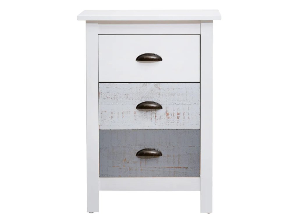 Barva Bílá, šedá Šířka 46 cm Výška 65 cm Hloubka 35 cm Váha 8.8 kg Nosnost 20 kg Výška nohou 7 cm Materiál Dřevo masiv Materiál konstrukce Masiv borovice Materiál nohou Masiv borovice Barva nohou Bílá Materiál zásuvky Masiv borovice, MDF Povrchová úprava zásuvky Lak Materiál úchytek Kov Materiál zadní části Dřevovláknitá deska Vlastnosti Se šuplíky Péče Čistit vlhkým hadříkem nebo houbičkou, nepouživat agresivní a abrazivní čističe