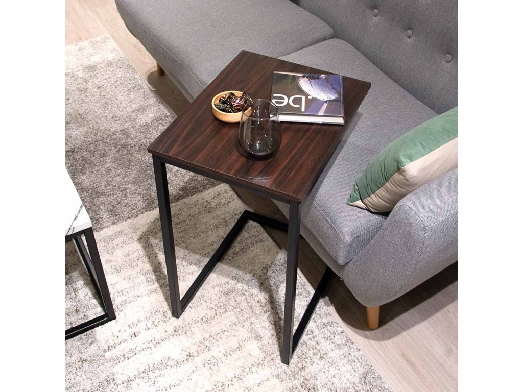 Díky vrchní desce s ořechovým vzhledem a robustnímu kovovému rámu je tento moderní odkládací stolek ideálním doplňkem vašeho interiéru. Díky chytrému designu ve tvaru U můžete odkládací stolek snadno zasunout na okraj pohovky nebo křesla, takže budete mít vždy po ruce praktický povrch. Odkládací stolek můžete použít jako stolek na notebook, konferenční stolek nebo dekorativní stolek.