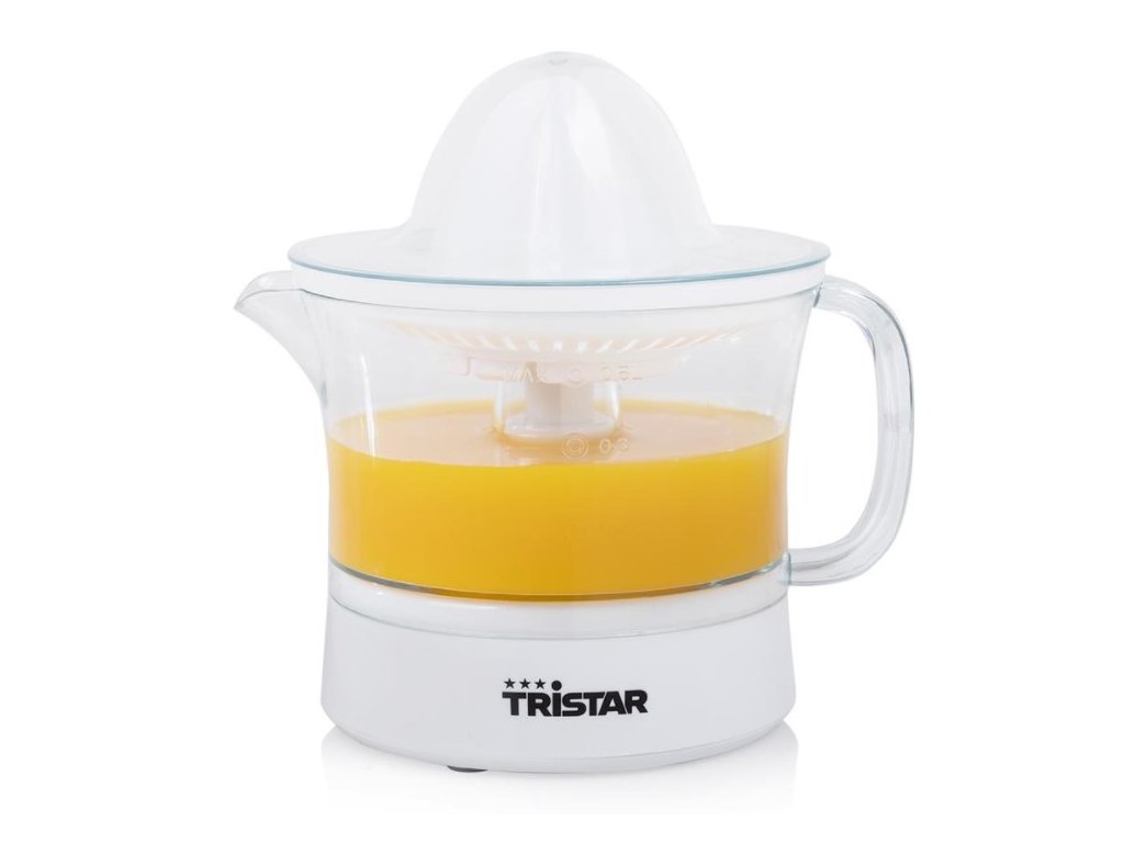 Lis na citrusy Tristar CP-3005, obsah 0,5 litrov, 2 veľkosti lisovacieho kužeľa pre každý citrusový plody, výkon 25 W, biela