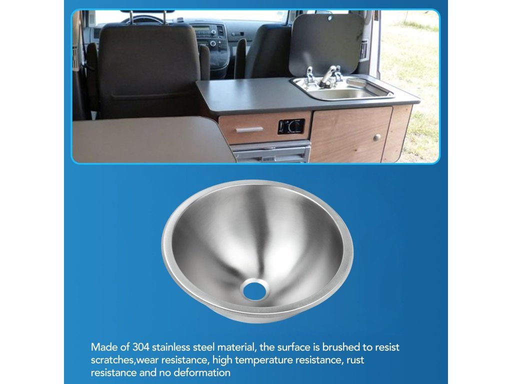 Kulatý vestavný dřez Xiuganpo 30,5 cm nabízí odolnou konstrukci z nerezové oceli 304, elegantní kartáčovaný povrch a úsporné provedení pod pracovní deskou — praktické řešení pro karavany, obytné vozy, lodě i menší domácí či komerční provozy.