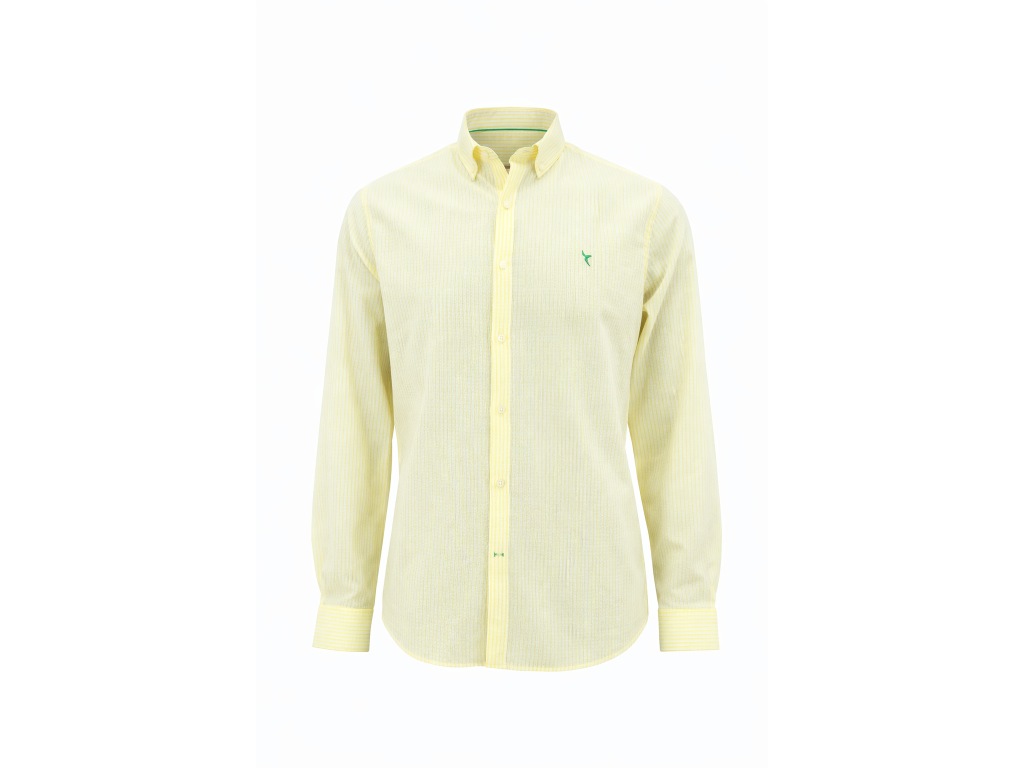 Pánská košile Carnet De Vol představuje dokonalou kombinaci elegance a pohodlí. Žluto-bílý proužkovaný design dodává košili moderní a stylový vzhled, který vynikne v každé situaci.