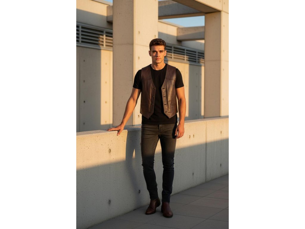 Štýlová pánska vesta z pravej prírodnej kože (bravčavice) je nadčasovým kúskom, ktorý dodá outfitu sebavedomý a mužný výraz. Precízna česká výroba zaručuje kvalitné spracovanie, dlhú životnosť a dôraz na detail.