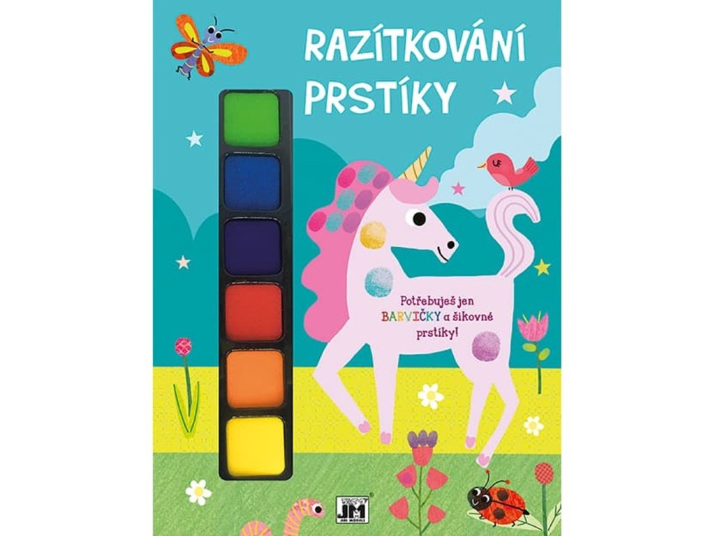 Pečiatkovanie prstíky obsahuje 32 stránok plných veselých obrázkov na dorazítkovanie a 6 prstových farieb.