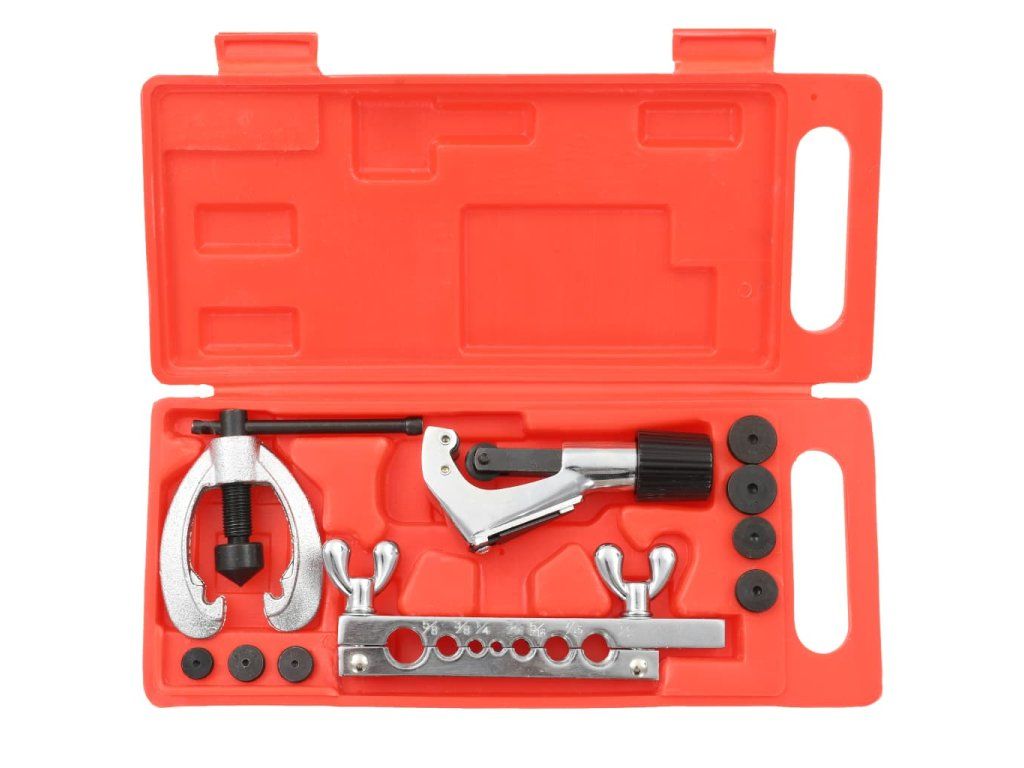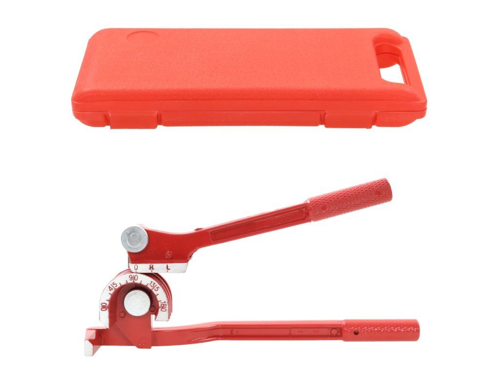 Sada je dodávána v pevném červeném kufříku pro snadné uložení a přepravu. Kompletní výrobek obsahuje: 1 x pertlovací nastroj, 1 x Pertl, 1x řezák trubek, 7x pertovací adaptér, 1x ohýbačka, 1x plastový kufřík Ohýbačka trubek je ideální pro ohýbání brzdových a palivových trubek a je také ideální pro použití v garážích, dílnách, pro kovářé , instalatéry, inženýry, lehké železné práce, atd, přesně ohýbání: 6/8 / 10mm trubky, z 0 až 180 stupňů. Řezák trubek vhodný pro měď, mosaz, hliník, plastové trubky a tenkostěnné potrubí. Řezná kapacita je od 1/8 "- 11/8". Vylepšený nástroj pro trubky ( 42 HRC) mohou stlačit 7 typů trubek : : 3/16 ", 1/4", 5/16 ", 3/8", 7/16 ", 5/8", 1/2 ", rozměry jsou stejné jako u 7. zahrnuty dvojité pertlovacie adaptéry. Poznámka: Dodávka obsahuje červený kufřík, který obsahuje celou pertlovací soupravu, a červenou ohýbačku, která je individuálně zabalena v krabičky.