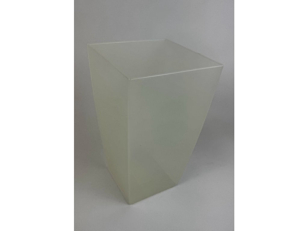 Priehľadný, ľahko žltý, plastový obal, výška 26 cm, 15 x 15 cm v hornej časti