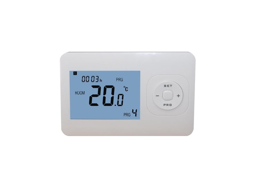Hodinový termostat má funkci denního nastavení pomocí pevného továrního nastavení nebo vlastního přání, funkci zapnutí/vypnutí, digitální 24hodinový časovač a lze jej nastavit se 4 spínacími body za den. Tento hodinový termostat má dobře čitelnou obrazovku a lze jej ovládat pomocí tlačítek.