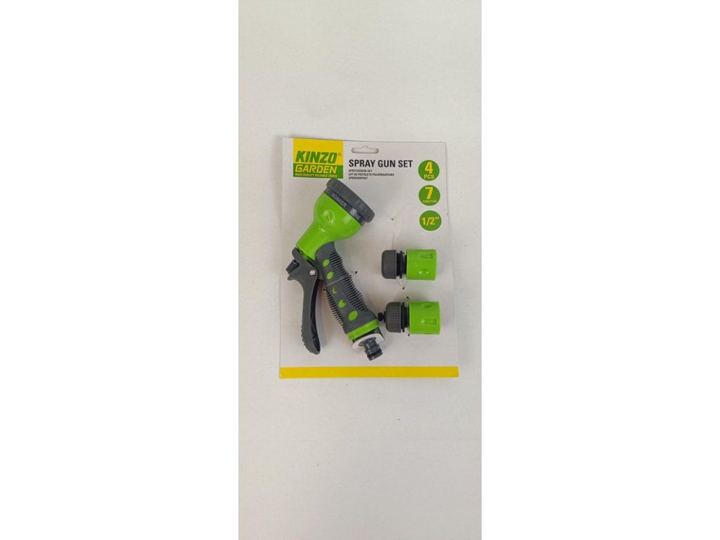 Univerzálna postrekovacia pištoľ KINZO s ergonomickou rukoväťou a 7 striekacími polohami. Obsahuje rýchlospojky pre ľahké pripojenie k záhradnej hadici 1/2". Vyrobená z odolného plastu s protišmykovou úpravou. Ideálna pre zalievanie záhrady a umývania.
