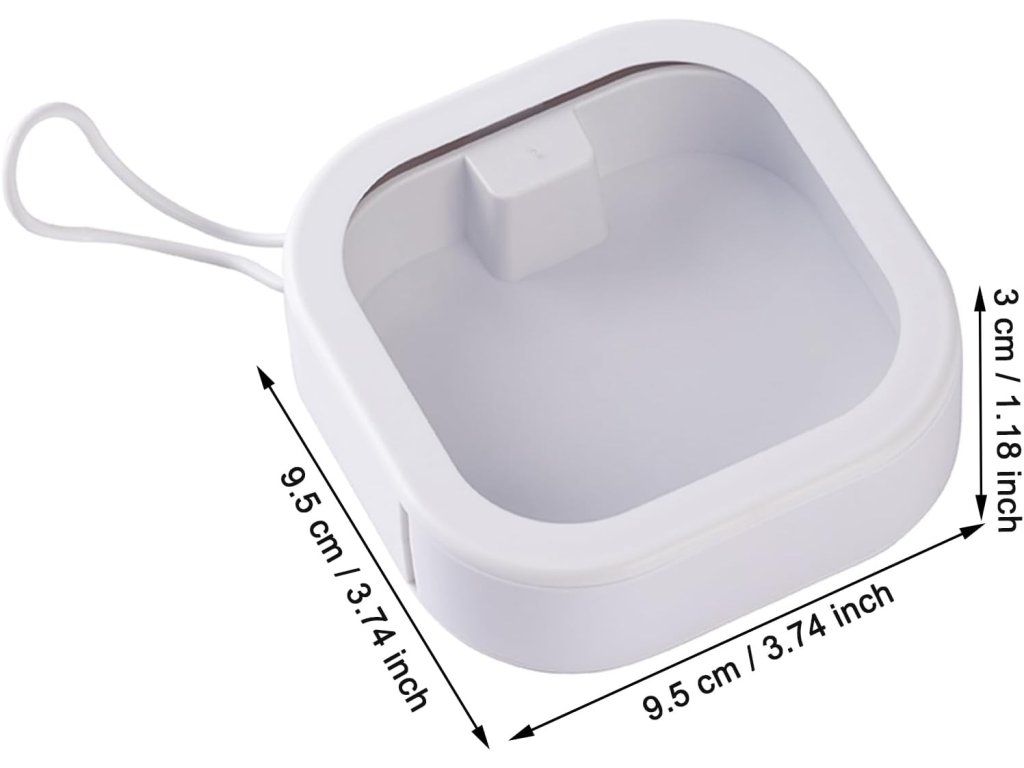 Obsah balení: 1× bílá malá úložná krabička. Technické údaje: rozměry 3,74 × 3,74 × 1,18 in (přibližně 9,5 × 9,5 × 3,0 cm), hmotnost cca 0,11 kg, materiál ABS + TPE/silikon, počet přihrádek 1, kapacita cca 0,27 l, uzávěr: západka s tlačítkovým mechanismem, produkt je dodáván již smontovaný. Záruka: 365 dní.