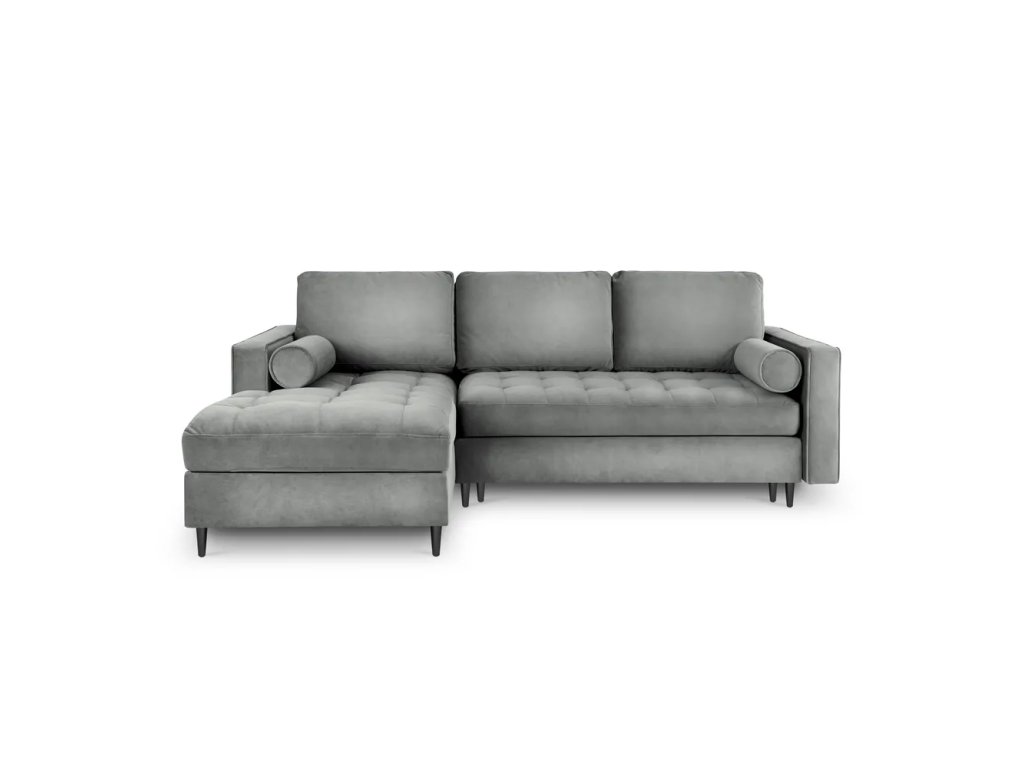 Zamatová, rozkladacia/s úložným priestorom, ľavý roh/s leňoškou, svetlo šedá, štvormiestna, šírka 240 cm.