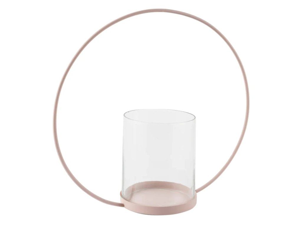 Elegantný veľký svietnik Sander od Eight Mood v matnej ružovej farbe s okrúhlym dizajnom. Vybavený skleneným veterným svetlom na dokonalú ochranu plameňa. Rozmery 34,5×34,5×12 cm. Ideálne pre sviečky aj čajové sviečky. Krásny doplnok interiéru v minimalistickom štýle.