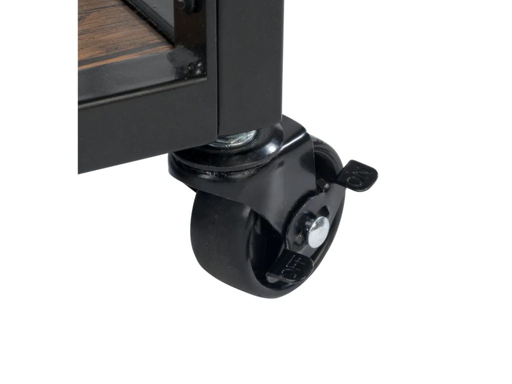 Na kolieskach, kovový, 40x80 cm. VRCHNÁ POLIČKA POŠKODENÁ Z BOČNEJ STRANY POZRI FOTO.