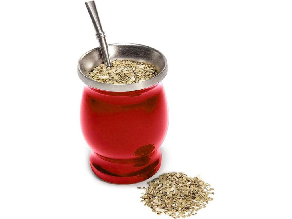 Dvojstenný kelímok na Yerba Maté v červenej farbe pre dokonalé vychutnanie tradičného juhoamerického nápoja. Udržuje optimálnu teplotu, vhodný aj na kávu. Sada obsahuje téglik a slamku, možno umývať v umývačke riadu. Ideálne pre milovníkov zdravých nápojov bohatých na antioxidanty.