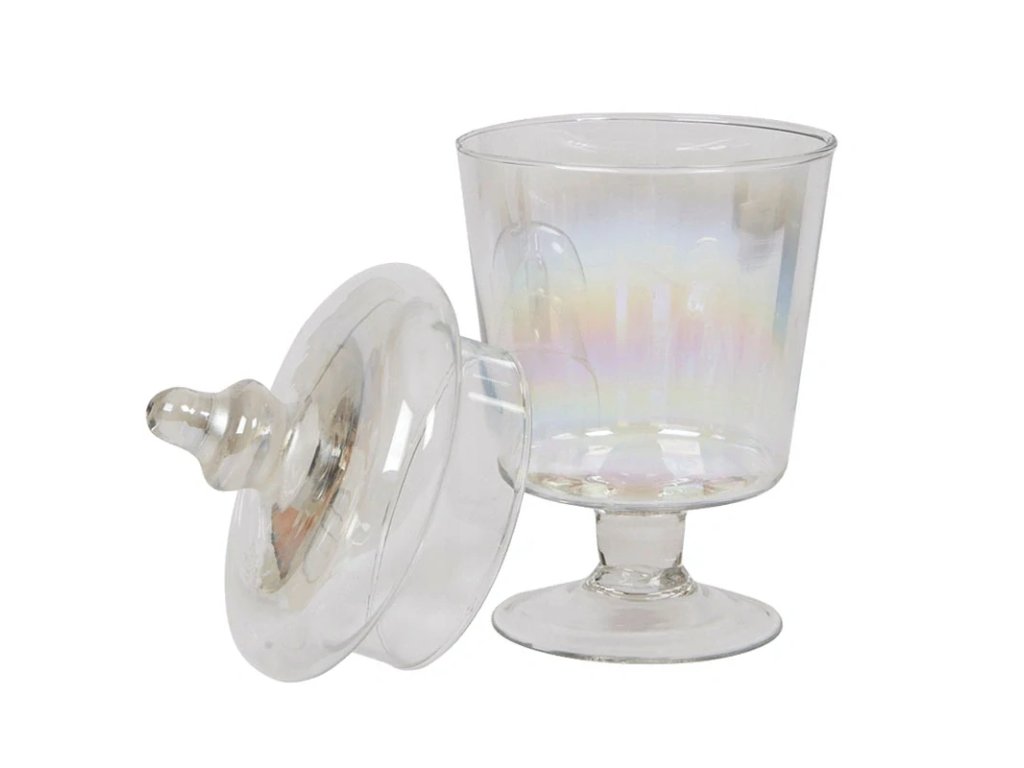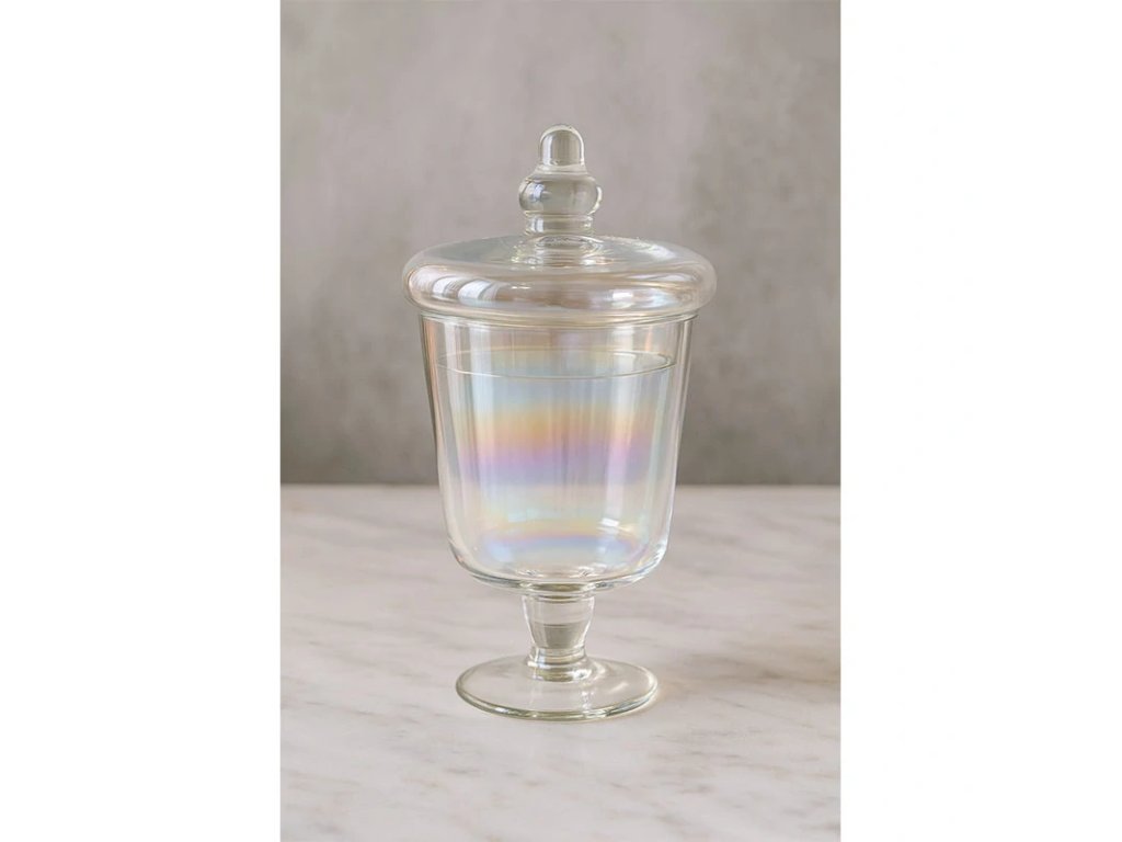 Díky svému duhovému efektu a elegantnímu víčku vynikne na stole i v kuchyňské poličce. Je ideální pro stylové podávání bonbonů, sušenek, ořechů či jiných pochutin.