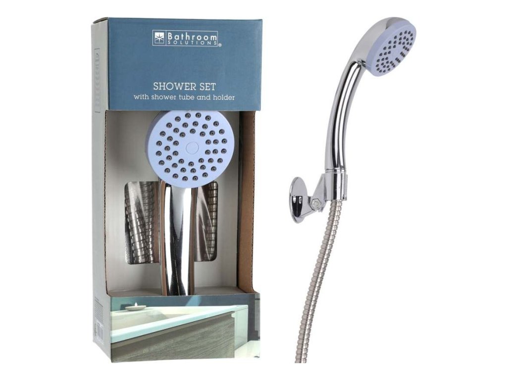Sprchový set v chromovém provedení s 5 funkcemi. Obsahuje nástěnné držáky a 150 cm dlouhou sprchovou hadici. Průměr sprchové hlavice je 95 mm.