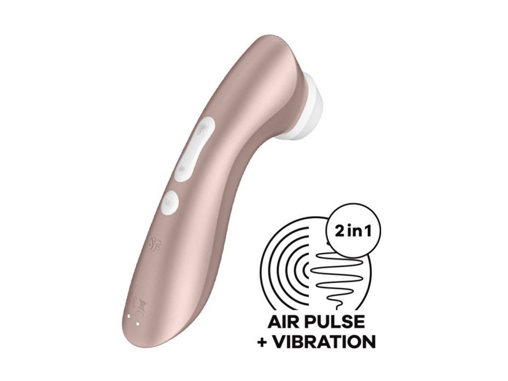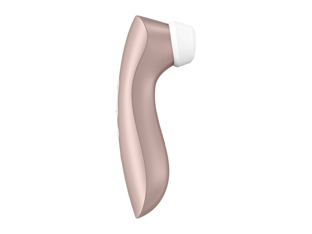 SATISFYER PRO 2 Revoluční erotická hračka pro několikanásobný orgasmus. Satisfyer Pro 2 je nový revoluční pomocník pro ženy, díky kterému dosáhnete snadno orgasmu. Vaše potěšení posune na zcela novou úroveň. Tahle vychytaná hračka stimuluje pouze klitoris a navíc bezdotykově a to díky vlastní inovativní technologii. Přijde vám to jako nesmysl? Nenechte se zmást, je to možné a tenhle chytrý pomocník vám to dokáže. Satisfyer Pro 2 má 11 různých programů od zcela jemné stimulace až po tu opravdu intenzivní. Díky bezdotykové simulaci klitorisu nedojde k jeho znecitlivění a můžete si tak dopřát i vícenásobný orgasmus. Satisfyer Pro 2 je velice tichý a elegantní společník. Satisfyer Pro 2 je navíc voděodolný, takže si můžete tuhle skvělou hračku užívat i ve vaně nebo ve sprše a pod vodou se účinky podtlakových vln ještě znásobí. Materiál a barevné provedení Satisfyer Pro 2. Design Satisfyer Pro 2 je velice luxusní, vyrábí se v elegantní měděném provedení. Hlavice je vyrobená z lékařského silikonu, který je příjemný a jemný na dotyk, je navíc odnímatelná, takže čištění a údržba je velice snadná. Dovnitř přístroje navíc nemůže být vtažena žádná tekutina ani lubrikační gel. Jak používat Satisfyer Pro 2 Přiložte oválnou hlavu na klitoris a užívejte si. Satisfyer Pro 2 nasaje klitoris a jemně jej stimuluje pomocí tlakových vln. Stiskem většího tlačítka zvýšíte intenzitu pulzací o jeden stupeň, podržením menšího tlačítka Satisfyer zapnete/vypnete. Až 11 pulzačních programů a voděodolnost i pro hrátky pod vodou.
