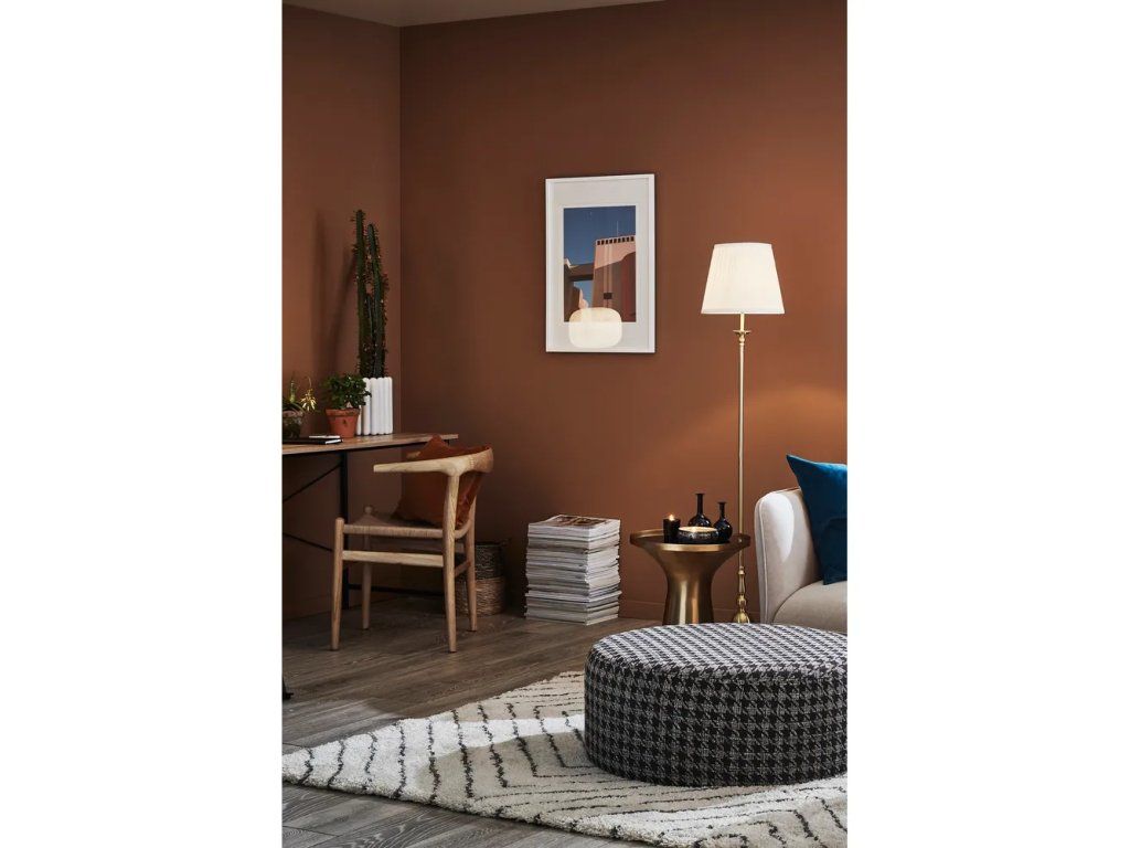 S textilným tienidlom, v zlatej farbe, výška 149 cm.