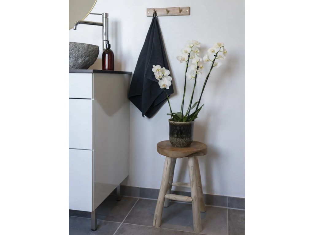 Tato stolička z masivního teakového dřeva vyniká svou přírodní naturálností a je ideálním doplňkem volného koutu v chodbě nebo na balkóně či terase. Exotické dřeviny se totiž skvěle hodí i do exteriéru. Postavte na ni třeba keramické květináče s pokojovými rostlinami nebo skleněnou vázu s usušenými stébly trávin a vytvořte si malou přírodní oázu.