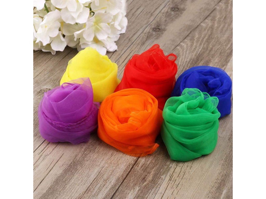 Nezbytnost pro úplné začátečníky v žonglování, ideální pro žonglování, tanec. Materiál: Šifon, látka je lehká a průhledná; Rozměry: 60 x 60 cm, velikost pro tanec nebo žonglování.