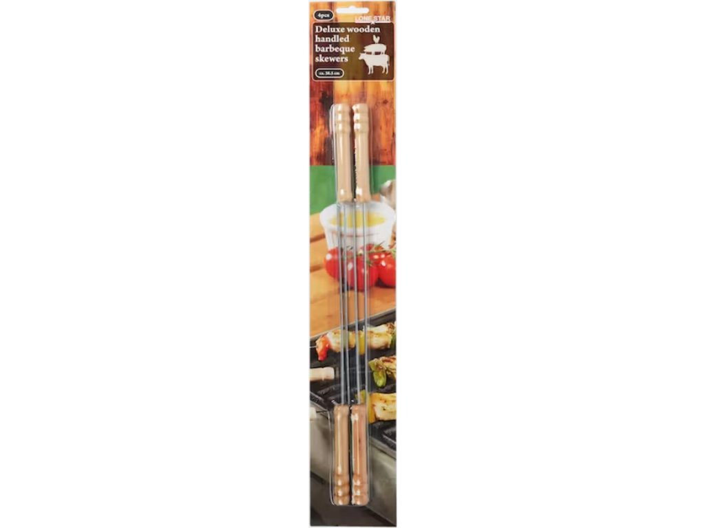 V sadě najdete rovnou čtyři špízy s dřevěnou rukojetí, která zaručuje snadnou manipulaci. Délka cca 38,5 cm.