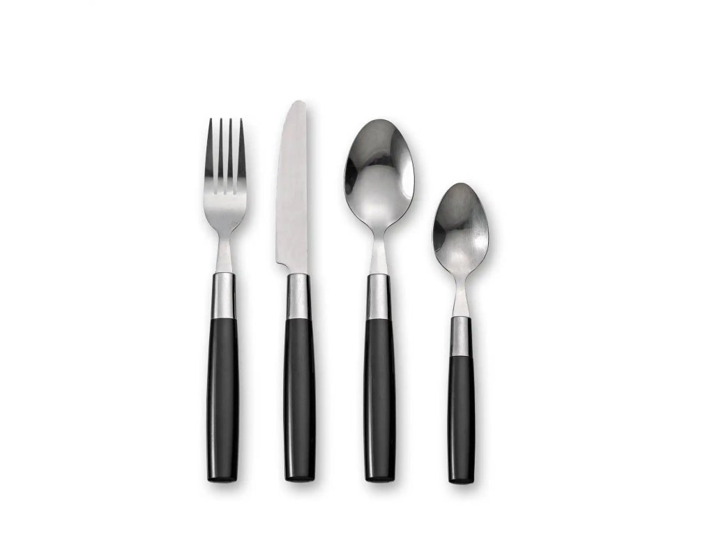 Súprava príborov Blokker – 16dielna – plastová nerezová oceľ – čierna