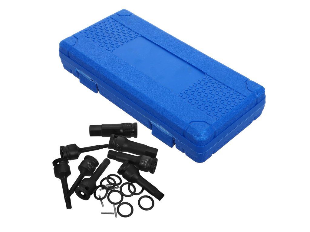 Praktická sada rázových nástrčných hlavic určená pro náročné použití v automobilovém servisu i průmyslu. Navržena pro efektivní přenos točivého momentu, odolává opotřebení a ulehčuje práci s rázovými utahováky a běžnými klíči.