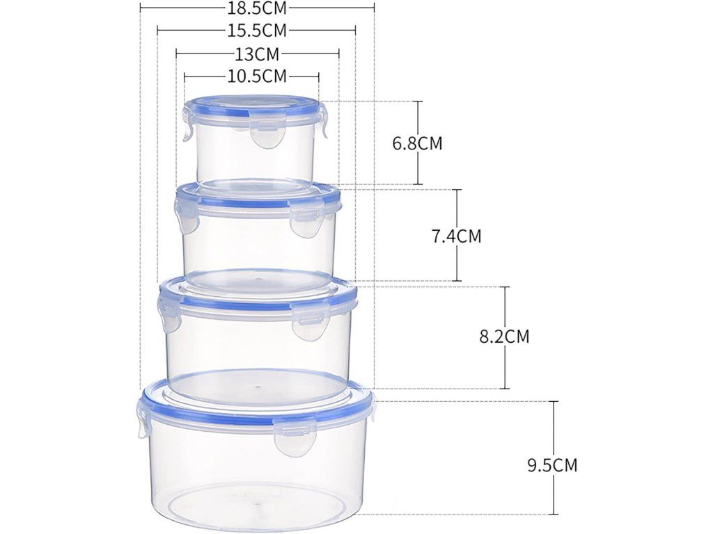 Súprava vzduchotesných okrúhlych dóz na potraviny 4 ks (300–1500 ml) Nové