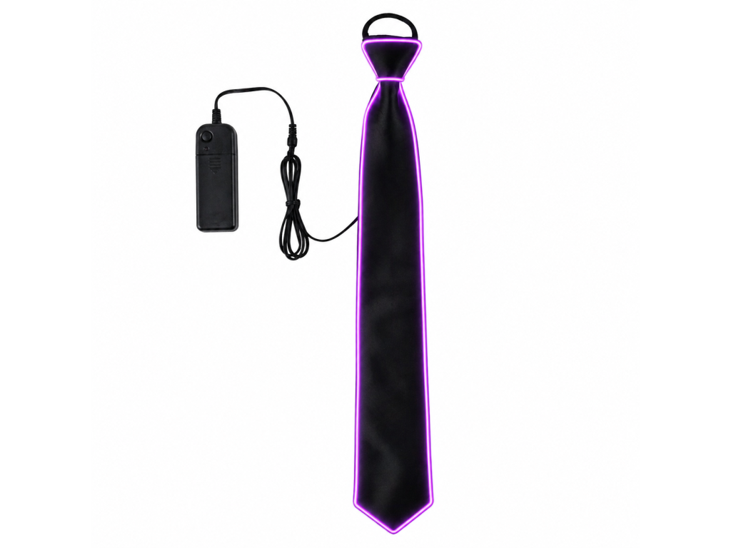 Štýlová svietiaca kravata s výrazným fialovým LED podsvietením, ktorá okamžite upúta pozornosť.