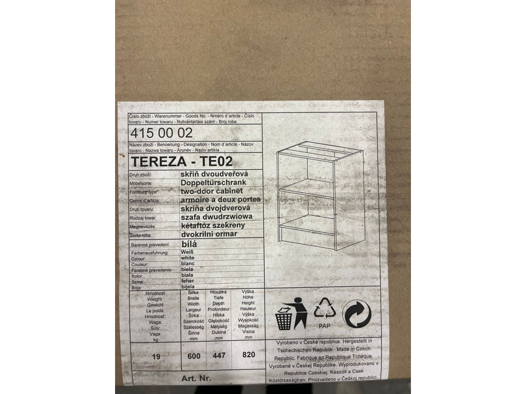 TE02 skriňa dvojdverová biela Nové, ilustračné foto