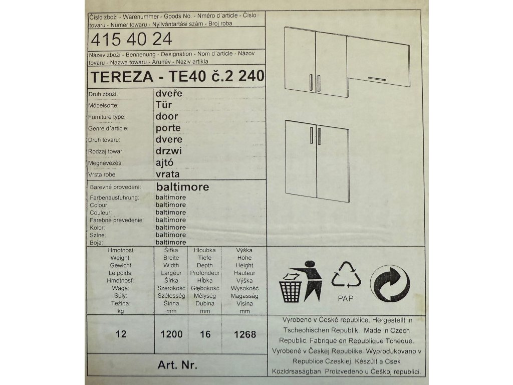Súprava 5ks dvierok do kuchyne. Farba Baltimore - viď.foto. Balenie neobsahuje spojovací materiál, iba dosky dvierok s predvyvŕtanými otvormi.