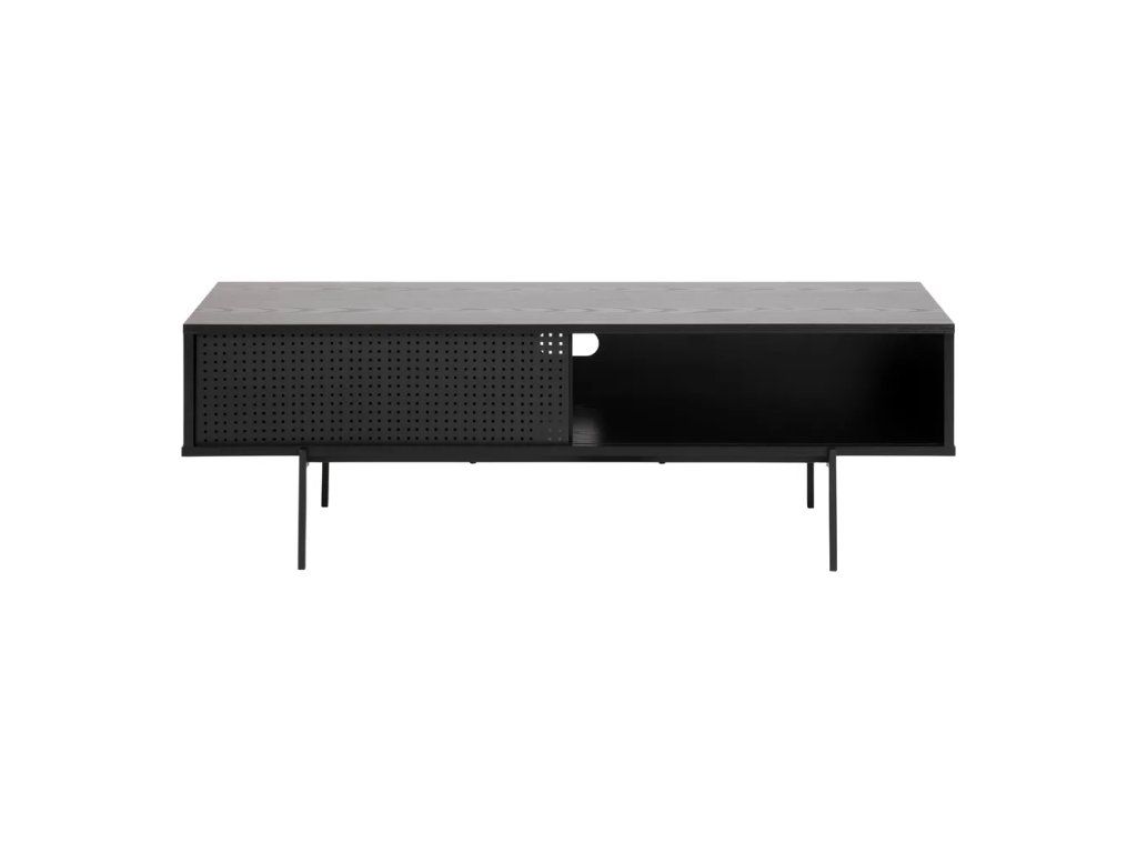 Štýlový TV stolík Angus od značky Actona kombinuje elegantný jaseňový dekor s čiernymi kovovými prvkami. Rozmery 140x45x40 cm poskytujú dostatok miesta pre TV a elektroniku. Perforované posuvné dvierka z kovu umožňujú skryť káble a udržať poriadok. Vyrobené z kvalitného MDF s melamínovou povrchovou úpravou a oceľovými nohami s práškovým lakom.