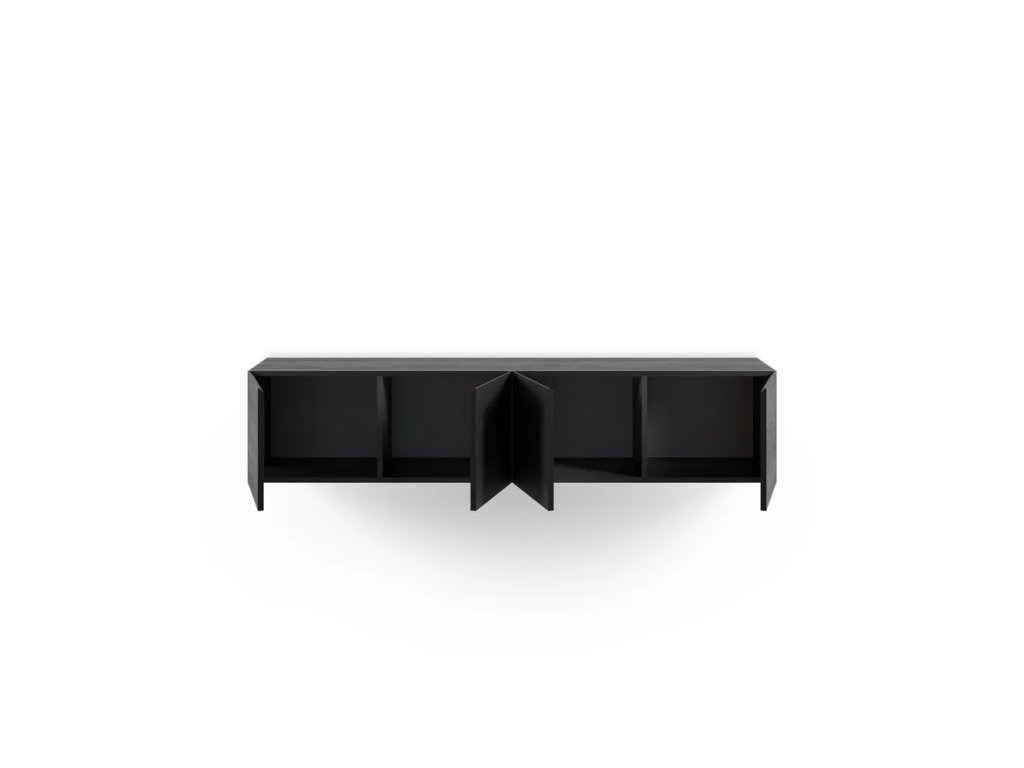 V dekore duba, z MDF, povrchová úprava: melamín, čierny, šírka 180 cm, výška 38 cm, hĺbka 35 cm. BOLO ZLOŽENÉ! MIESTY ĽAHKEJ ODERKY A ŠKRÁBANCA.
