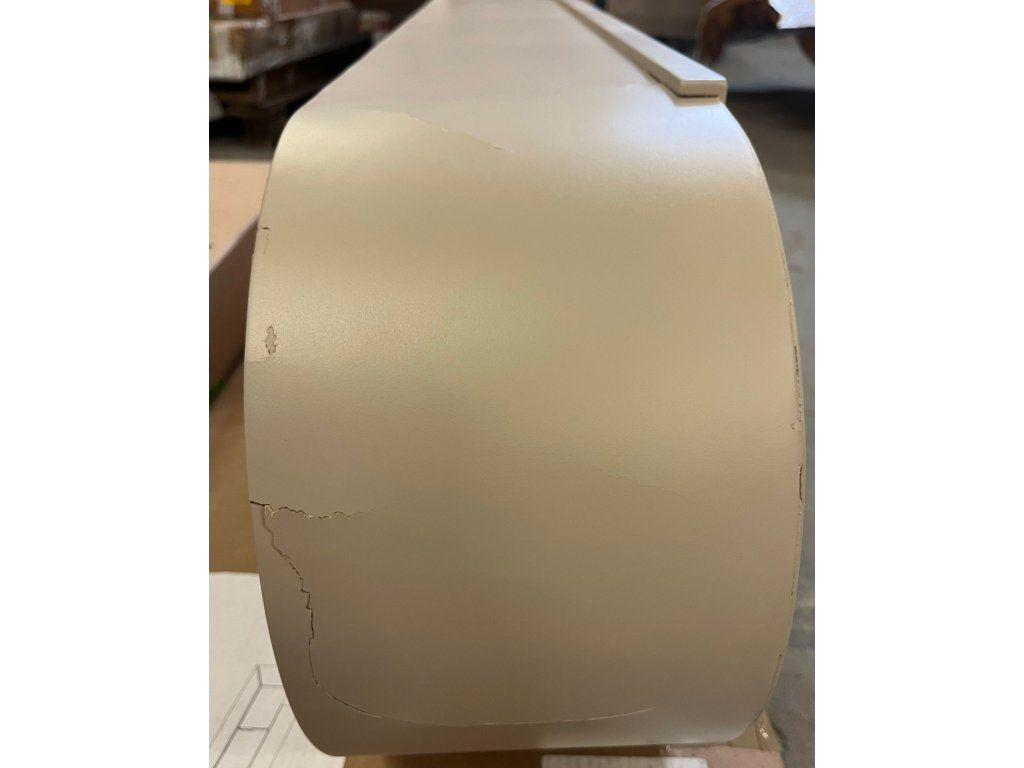 Z MDF, povrchová úprava: farba, béžový, šírka 200 cm, výška 50 cm, hĺbka 47 cm. NOHA STOLA JE Z BOČNEJ STRANY PRASKLÁ POZRI FOTO.