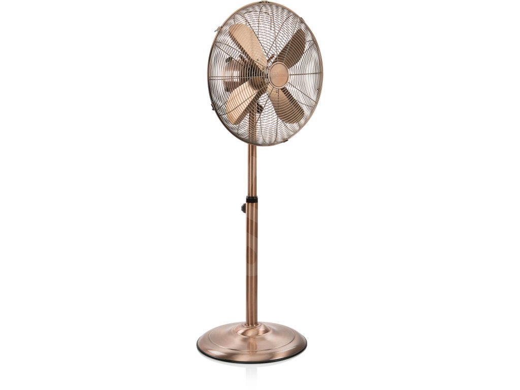 Ventilátor stojanový, priemer lopatiek 40 cm, hlučnosť 64,3 dB, výkon 50 W, počet rýchlostí 3, oscilácia a ochrana pred prehriatím , farba medená