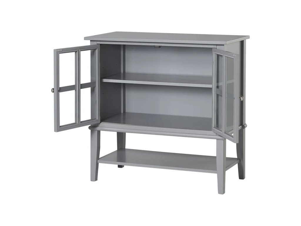 Barva Šedá Šířka 80 cm Výška 78 cm Hloubka 40 cm Výška nohou 10 cm Materiál MDF Povrchová úprava Lak Barva nohou Šedá Materiál poliček MDF Povrchová úprava poliček Lak Materiál dvířek Sklo Vlastnosti S dvířky, s poličkami, na nožičkách Péče Čistit vlhkým hadříkem nebo houbičkou, nepouživat agresivní a abrazivní čističe