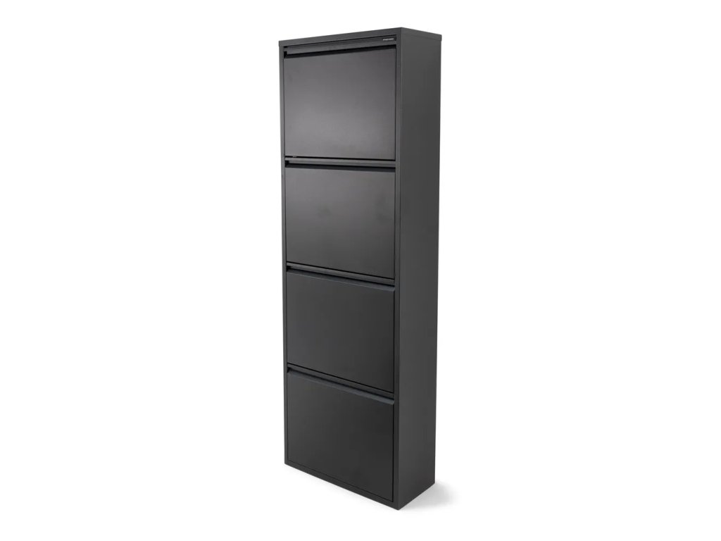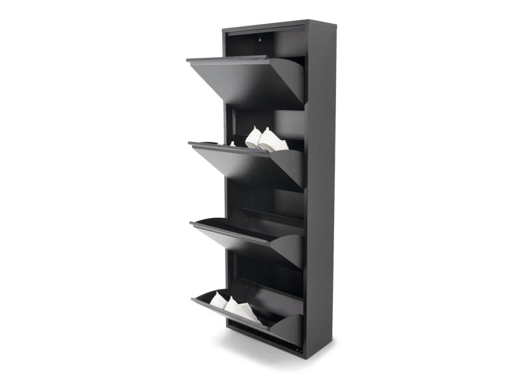 Výklopný, kovový, povrchová úprava: práškový lak, čierny, počet párov topánok 16, šírka 50 cm, výška 150 cm, hĺbka 22 cm.