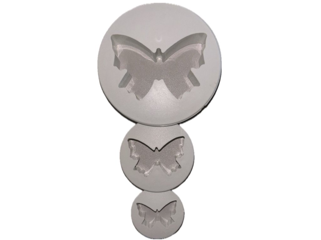 Súprava plastových vykrajovačov v tvare motýľa v troch rôznych veľkostiach.