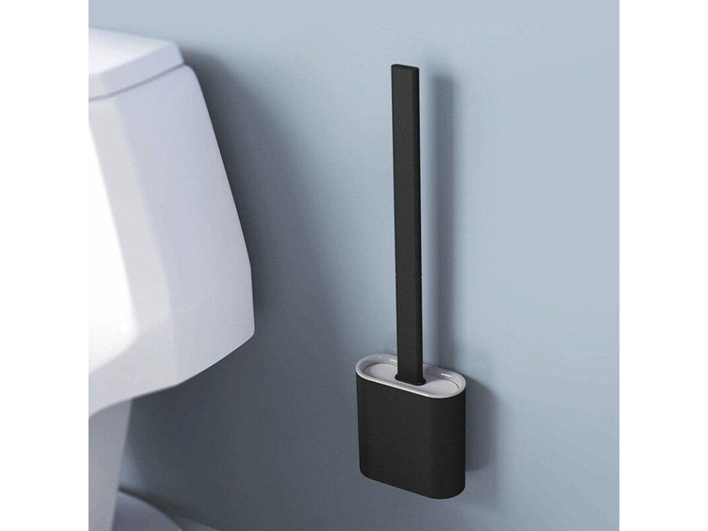 Praktická WC kefa s ohybnou silikónovou hlavou, ktorá dokonale vyčistí všetky priestory toalety vrátane drážok. Nástenná nádoba z plastu zaisťuje rýchle schnutie a úsporu miesta. Silikónové štetiny nepoškriabu záchodovú misu. Rozmery 36,5 x 9,8 x 4,3 cm.