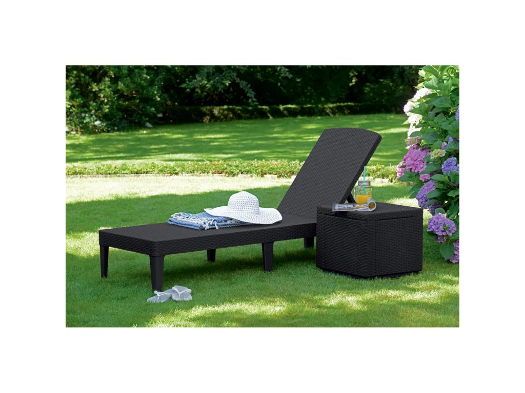 Polohovací, z umelého ratanu, tmavo hnedé, nosnosť 110 kg, šírka 58 cm, výška 29 cm, hĺbka 187 cm.