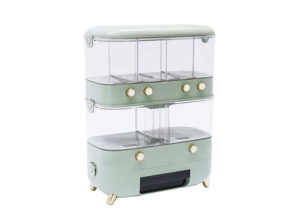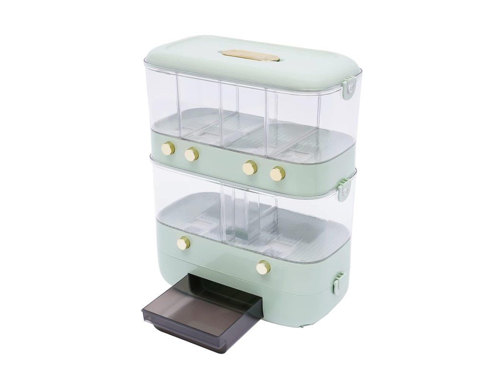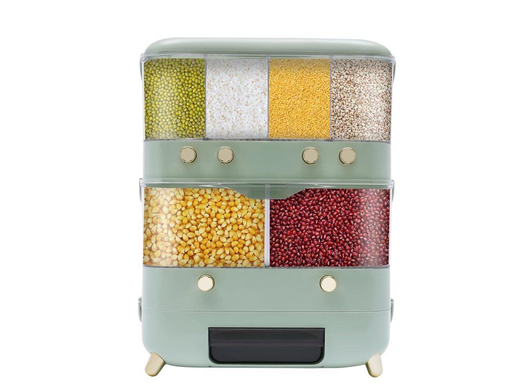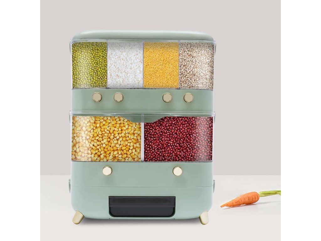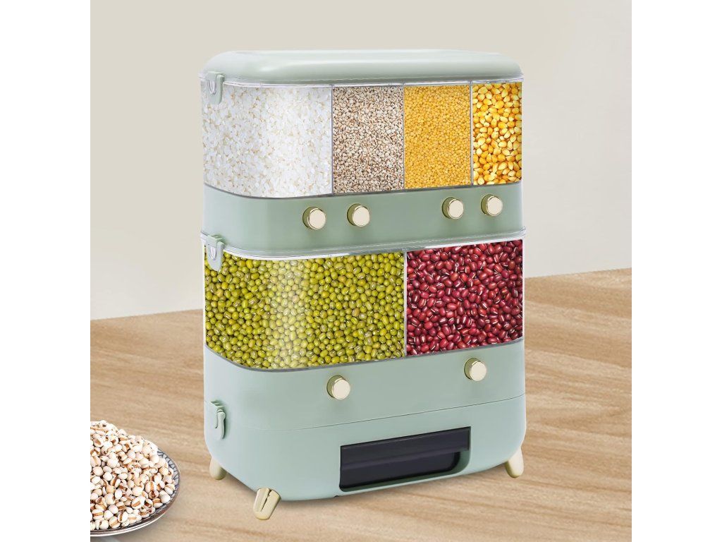 Dvouvrstvá skladovací kapacita nádoby na obiloviny je 10 kg, což stačí pro každodenní potřeby vaší rodiny.