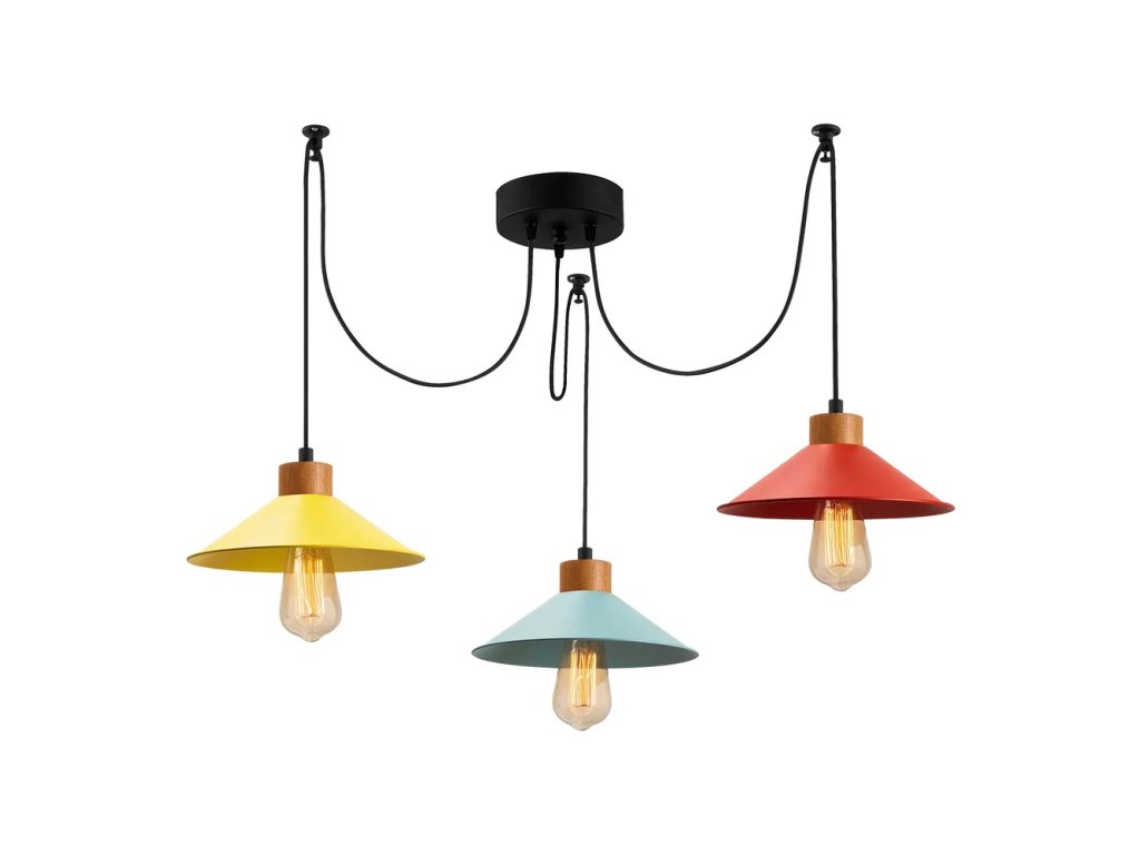 Barva Barevná Patice E27 Počet žárovek 3 ks Příkon 40 W Napájení Trvale nainstalováno Žárovka součástí balení Ne Průměr 114 cm Výška 100 cm Průměr stínidla 24 cm Délka kabelu 180 cm Váha 2.4 kg Materiál Kov Materiál stínidla Kov Péče Otírejte suchým hadříkem Vlastnosti svítidla Nastavitelná délka