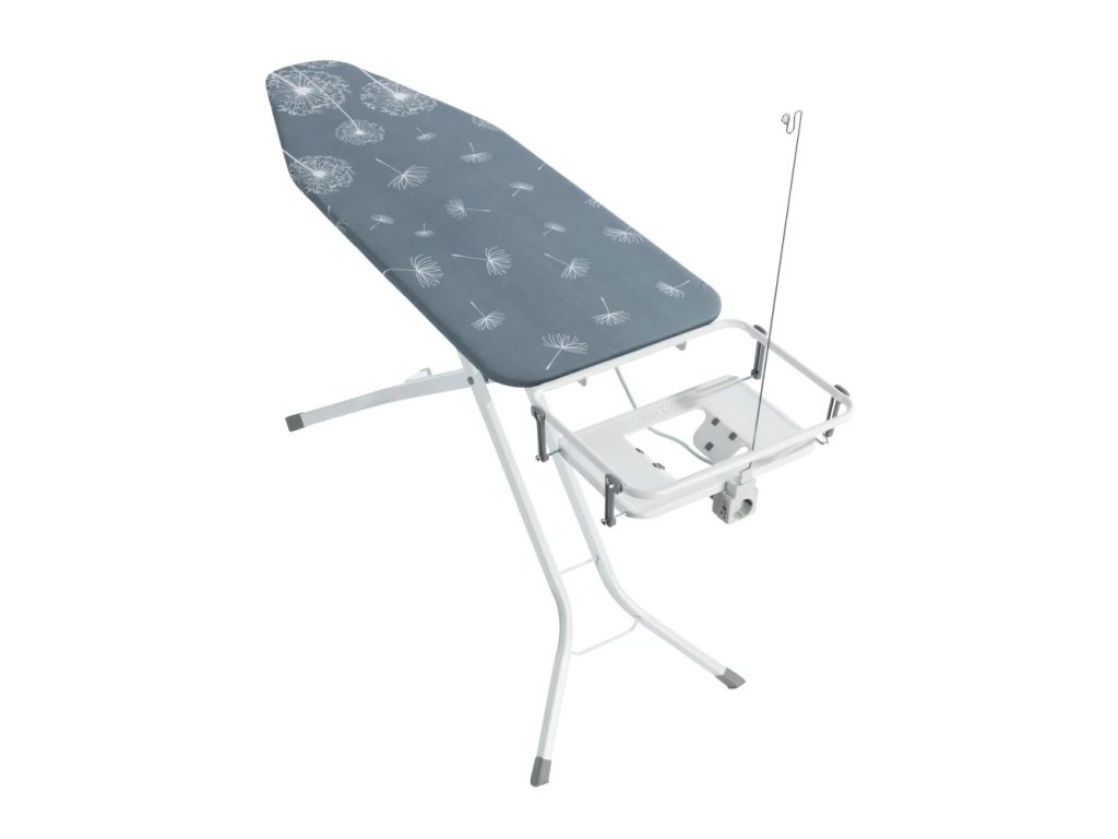 Žehlící prkno má bavlněný potah v moderním designu a polstrování Molton, které napomáhá šetrnému žehlení bez mačkání. Rám žehlícího prkna je vyroben z práškově lakované, obzvláště pevné čtvercové trubky o rozměrech 35 x 20 mm a je extrémně stabilní. Integrovaná zásuvka nabízí ještě větší pohodlí při žehlení. Délka 130 cm Šířka 48 cm Výška 99 cm Váha 8.266 kg Příslušenství Držák na parní generátor, zásuvka, nastavitelná výška Materiál Kov Doplňkový materiál Bavlna Péče Otírejte suchým hadříkem