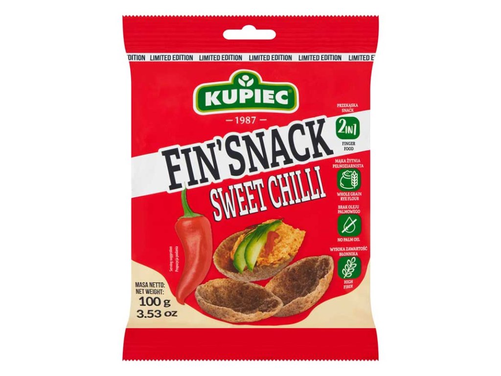 Žitné snacky FIN'SNACK SWEET CHILLI sú perfektnou desiatou. Dvakrát upečené a chrumkavé, sú perfektnou náhradou za nezdravé desiaty.