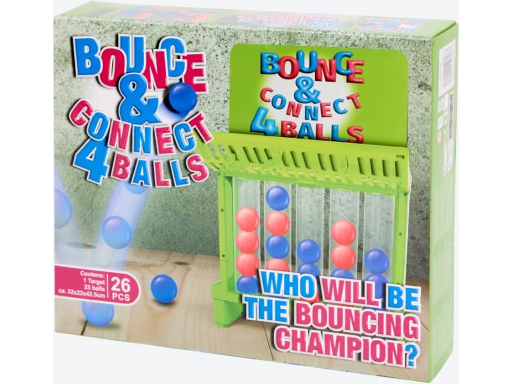 Bounce & Connect 4 Balls je dynamická šikovnosť hra pre deti, ktorá zaisťuje skvelú zábavu a rozvoj koordinácie pohybov.